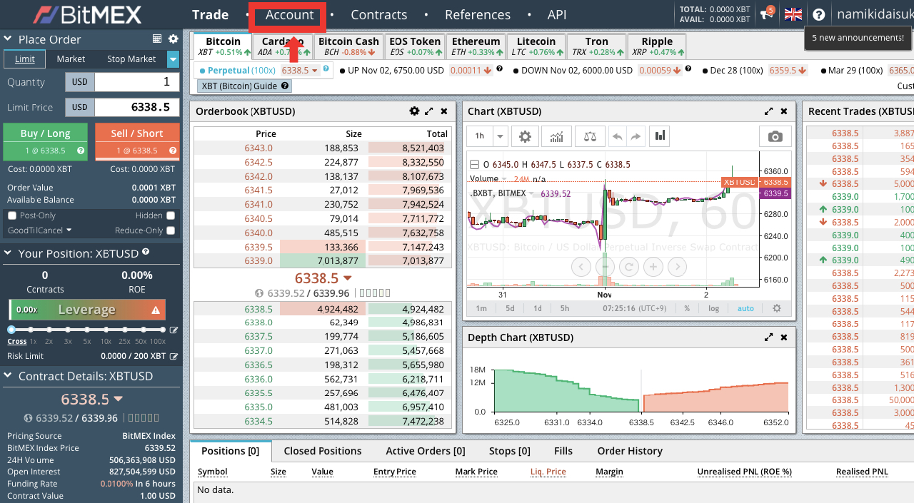 取引所にログインして、ページ上部右側の「人型マーク」をクリックしてください。